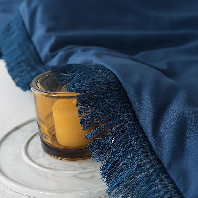 Andency Navy Blue Comforter Set Twin Size, 2 Pieces Boho Tassel Lightweight Bedding Comforter Sets, All Season Soft Fluffy Fringe Bed Set (66x90In Comforter & 1 Pillowcase)