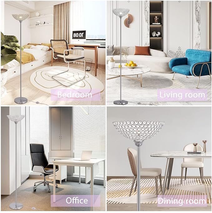 About This 【Modern Grammy Design】The standing floor lamp for the living room is equipped with a shiny K9 crystal lampshade,...