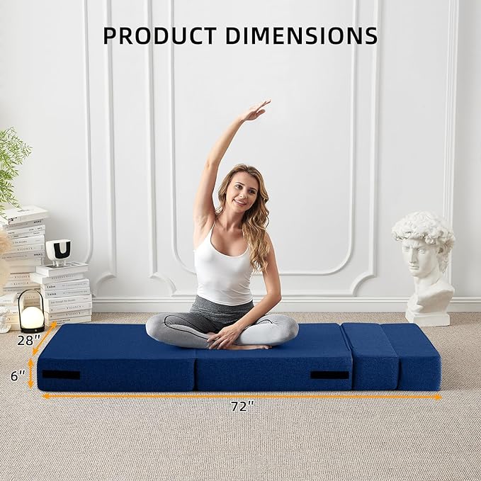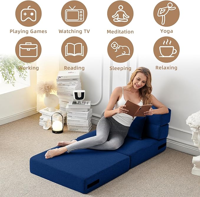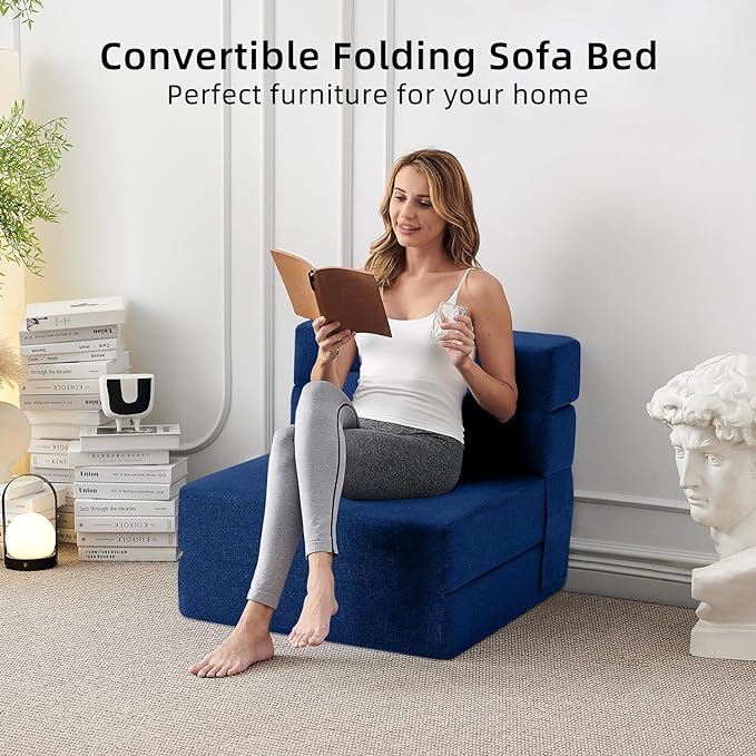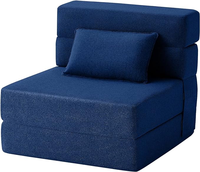 Convertible Folding Sofa Bed - Sleeper Chair with Pillow, Modern Linen Fabric Floor & Futon Couch, Foldable Mattress for Living Room/Dorm/Guest Use/Home Office/Apartment, Single Size, Navy Blue