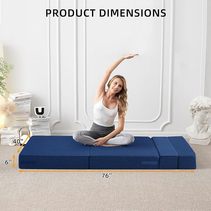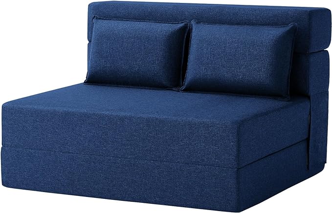 Convertible Folding Sofa Bed - Sleeper Chair with Pillow, Modern Linen Fabric Floor & Futon Couch, Foldable Mattress for Living Room/Dorm/Guest/Home Office/Apartment,Standard Size, Navy Blue