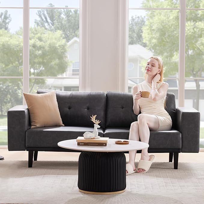 About This 【MID CENTURY MODERN COUCH】 79'' faux leather couch with clean lines and smooth structure curve, anchor your space...