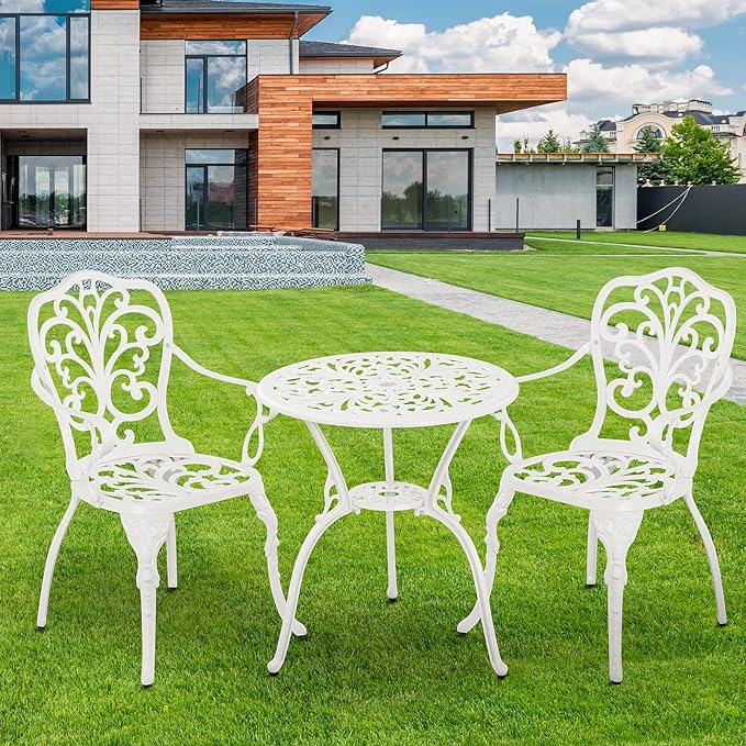 About This 【Durable Bistro Sets】Outdoor Bistro set made of solid cast aluminum with resistant powder coated, which is waterproof and...