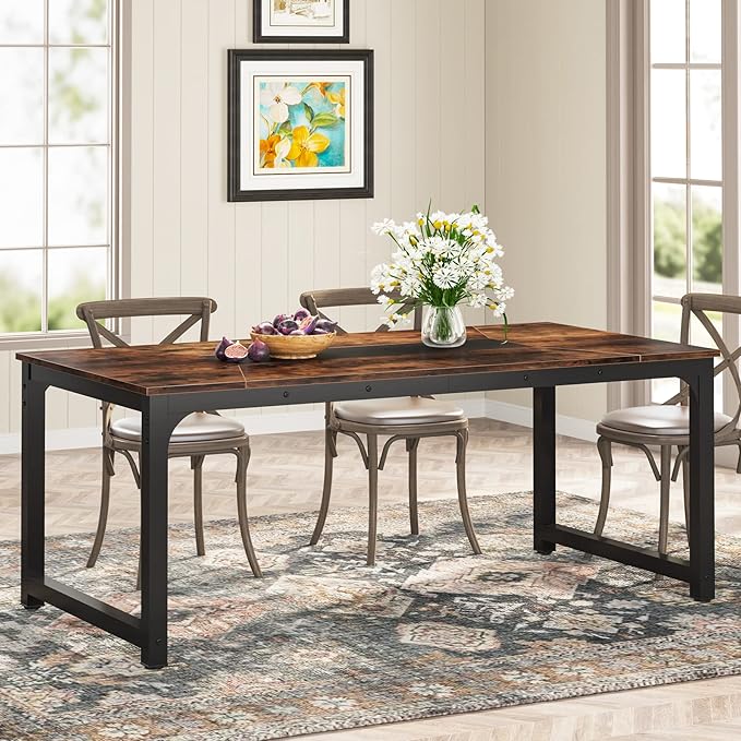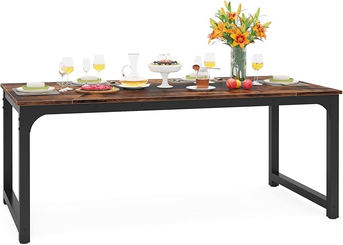 78.7 Inch X-Large Dining Table Rectangular Kitchen Furniture for 6 to 8 People, Brown