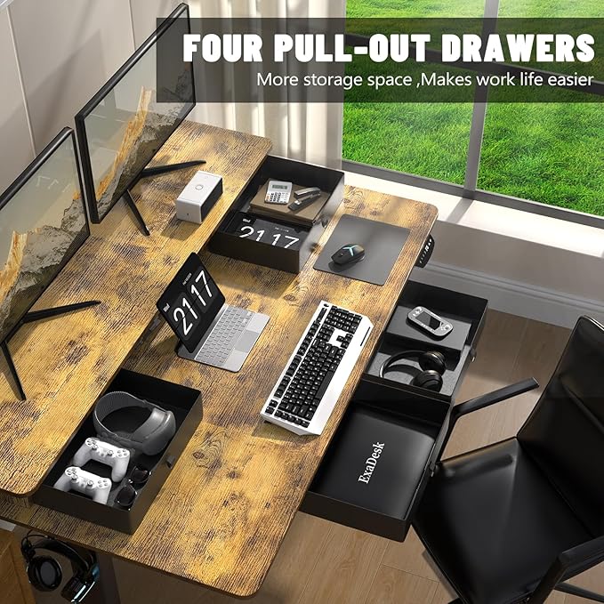 55 * 30 Inches Electric Standing Widened Desk Adjustable Height with 4 Drawers, Double Storage Shelves Stand Up Desk, Home Office Workstation Sit Stand up Desk (Rustic Brown)