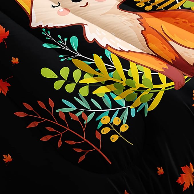 Cartoon Fox Comforter Set 3-Pieces Cute Fox Bedding Set Moon Plants Leaves Printed Quilt Set for Kids Boys Girls with 2 Pillowcases Queen