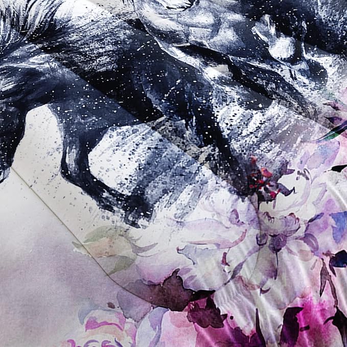 Kid Galloping Horse Comforter Set Room Purple Floral Animal Theme Handsome Horse Bedding Set for Boys Girls Adult, 1 Comforter + 2 Pillowcases