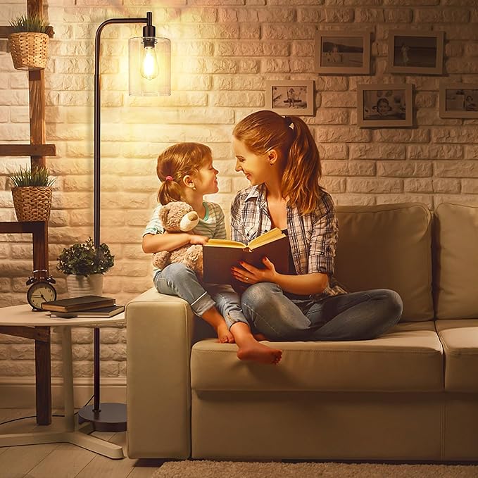 MAXvolador Industrial Floor Lamp, Modern Standing Lamps with Hanging Clear Glass Shade, Classic Reading Tall Pole Light for Living Room Bedroom, Brown