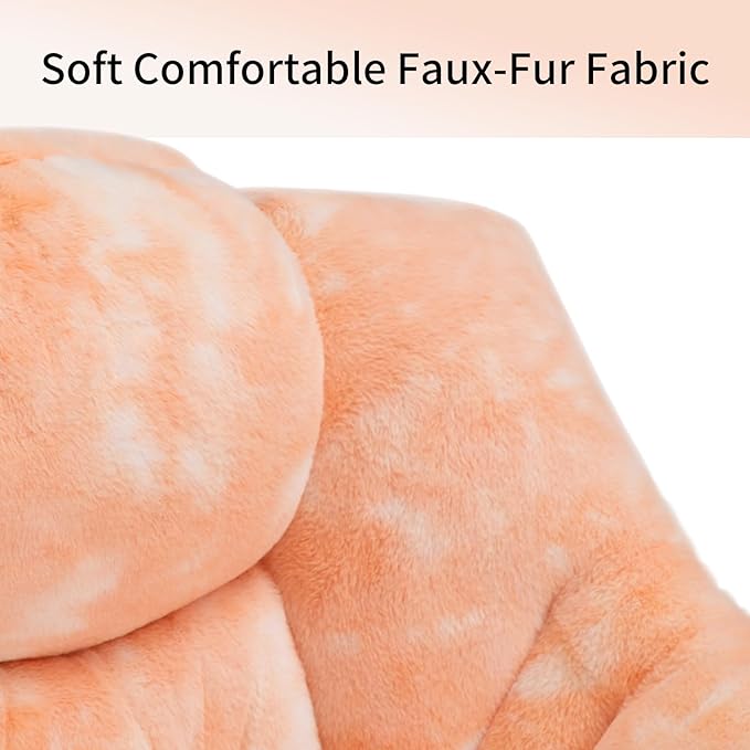 HollyHOME Faux-Fur Lazy Chair with Foldable Ottoman, Accent Comfy Lounge Arm Chair and Folding Footrest Stool Set, Leisure Sofa Reading Chair and Footstool for Living Room, Bedroom, Orange&White