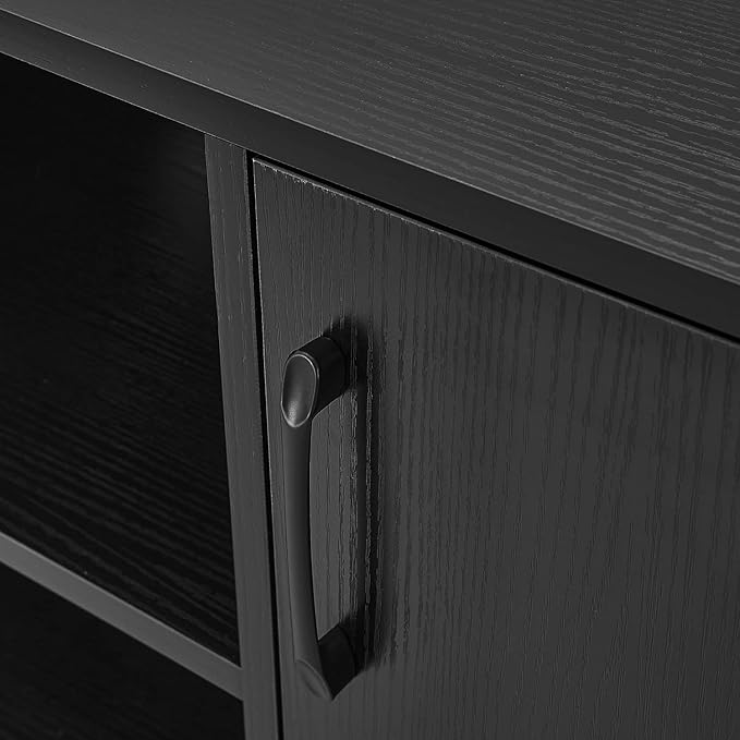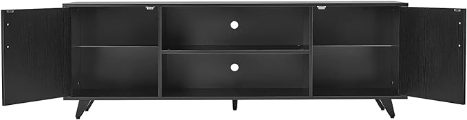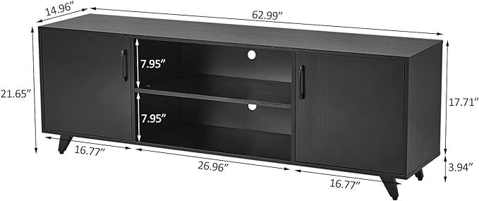 Panana TV Stand Television Stands TV Console Unit with Shelf and 2 Doors Storage Cabinets for Living Room Bedroom for TVs up to 70 Inches (Black, 62.99 inch)