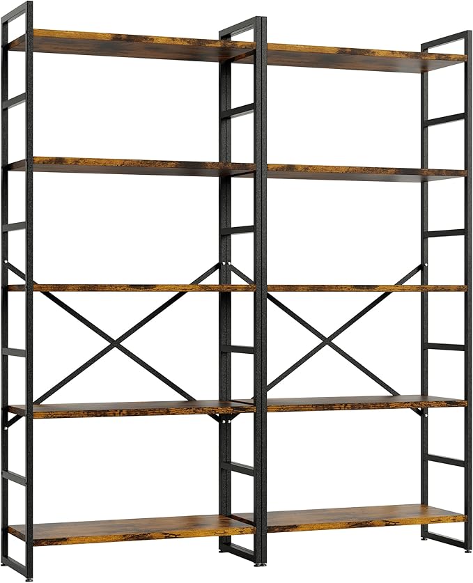 Shintenchi 2 Pieces 5 Tiers Bookshelf, Classically Tall Bookcase Shelf, Industrial Book Rack, Modern Book Holder in Bedroom/Living Room/Home/Office, Storage Rack Shelves for Books/movies-Rustic Brown