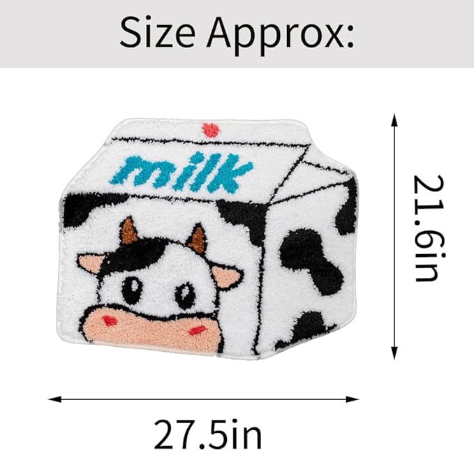 Milk Cow Bathroom Rugs Milk Box Shaped Animals Non Slip Cute Bath Rug Soft Absorbent Microfiber Bathtub Door Mat for Bathroom Kitchen Floor Tub Shower Rug Black White