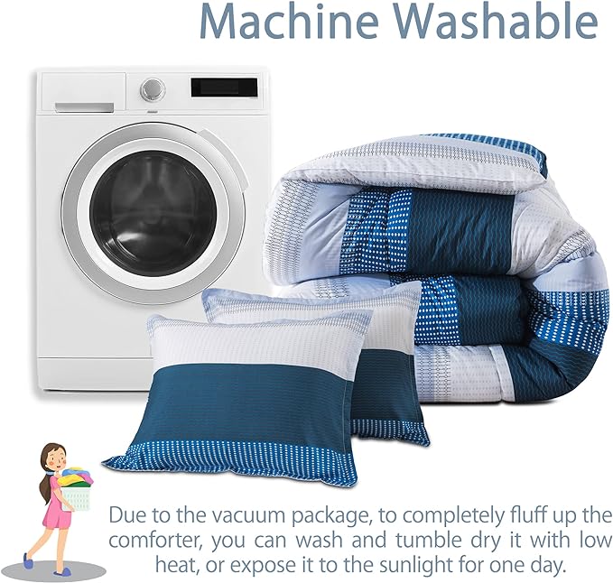 Andency Stripe Comforter Set King Size (104x90 Inch), 3 Pieces Navy Patchwork Striped Comforter, Soft Microfiber Down Alternative Comforter Bedding Set with Corner Loops