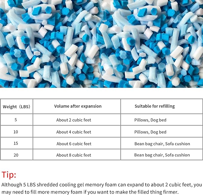 5 LBS Shredded Memory Foam Filling, Bean Bag Filler, Added Gel Particles Comfortable and Soft,Very Suitable for Filling Bean Bags, Pillows,Dog beds, Couch Cushion