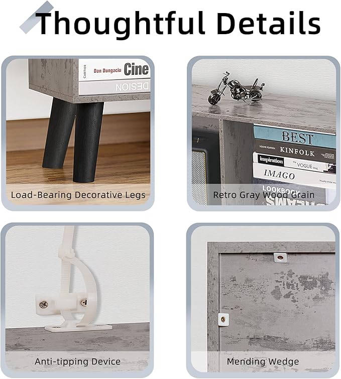LEYAOYAO 10 Cube Bookshelf,3 Tier Modern Wide Bookcase with Legs,Mid-Century Wood Bookshelves Storage,Retro Grey Large Book Case,Freestanding Organizer Display Shelf for Bedroom,Living Room,Office