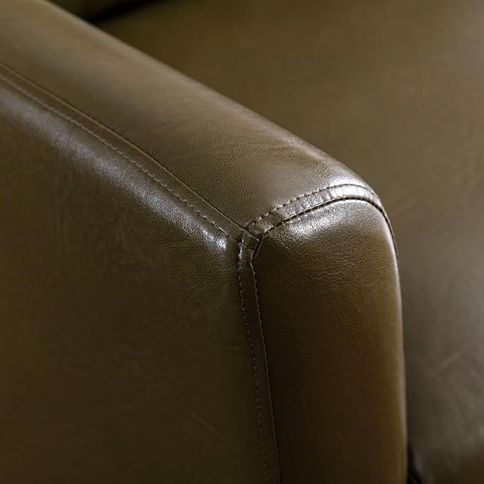 Dreamsir 80'' Faux Leather Sofa Couch, Mid-Century Modern Sofa with Solid Wooden Frame & Padded Cushions, 3-Seater Couch for Living Room, Apartment, Lounge Room (Green)