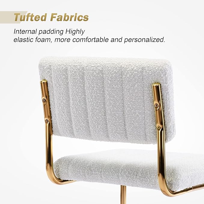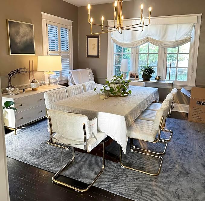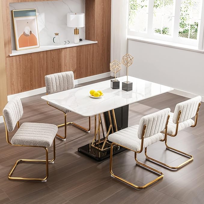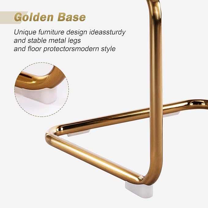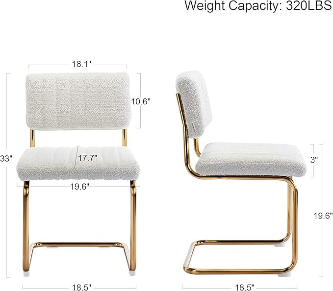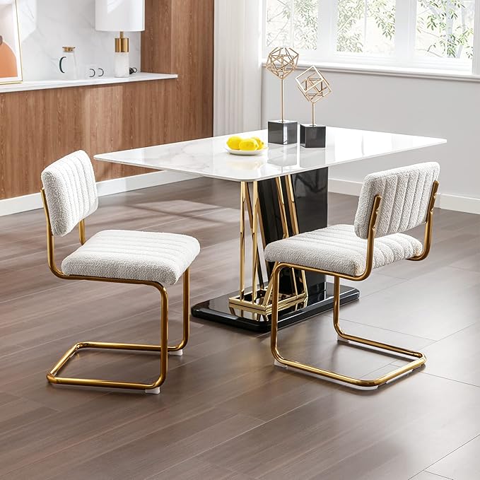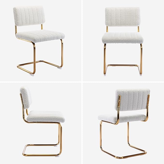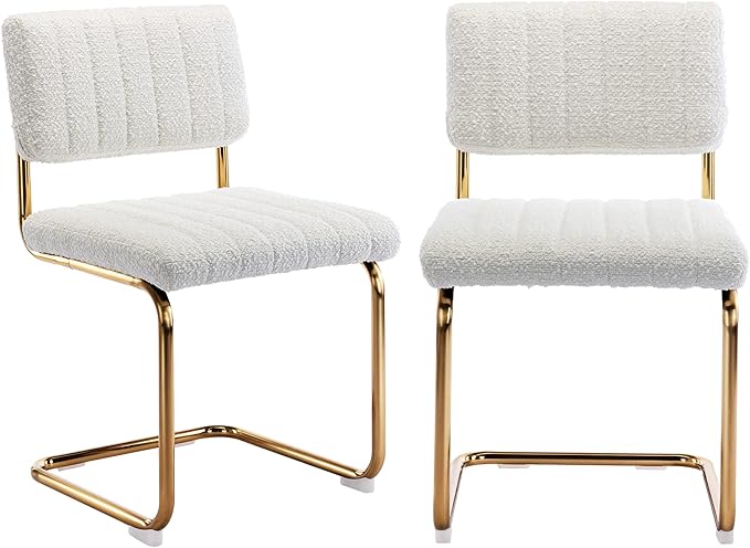 ONEVOG Cozy Boucle Dining Chair Set of 2, Upholstered White Dining Room Chairs with Gold Legs, Famous Cantilevered Design Comfort Dinner Chairs, Sturdy Stainless Chrome Base