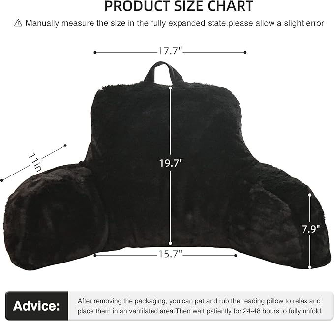 Aimuan Reading Pillow Bed Rest Wedge Large Adult Backrest Pillow with Arms Back Support for Sitting Up in Bed Cushion Incline Rest Sleeping Snoring Pillow, Black Large