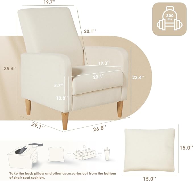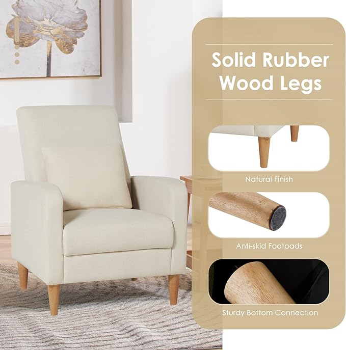 COLAMY Modern Upholstered Accent Chair Armchair with Pillow, Fabric Reading Living Room Side Chair,Single Sofa with Lounge Seat and Wood Legs, Beige