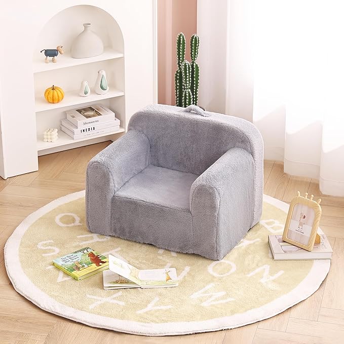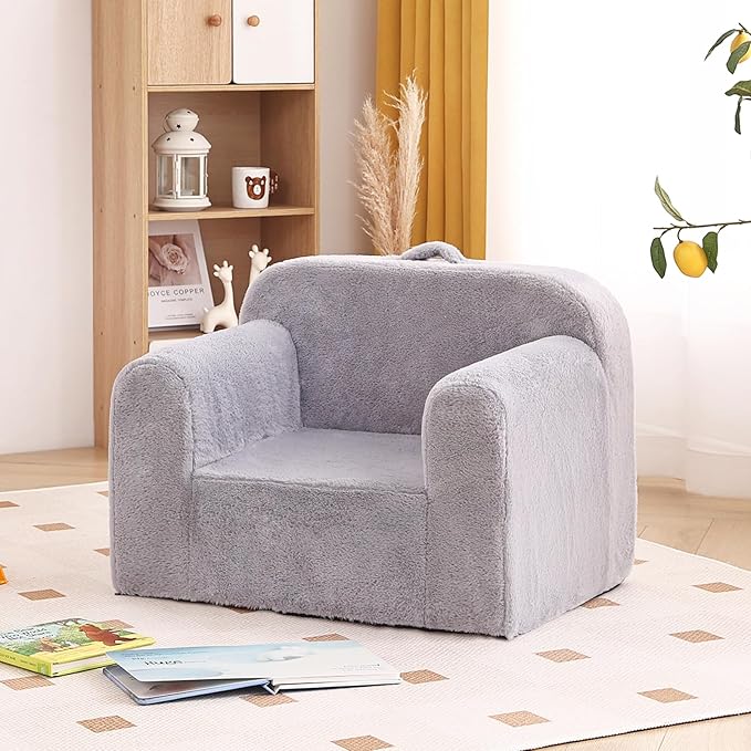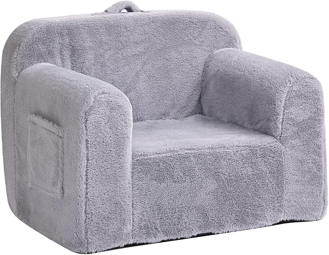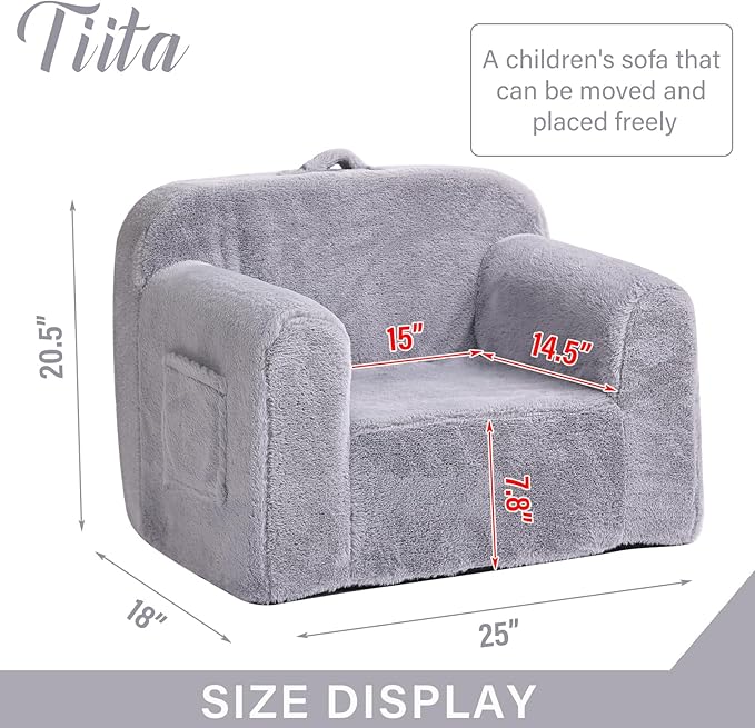 Tiita Kids Sofa, Children Couch with Carrying Handle & Side Pockets, Kids Foam Chair, Toddler Armrest Chair, Lightweight Children Sofa Chair, Kids Read Sofa for Girl or Boy (Grey)