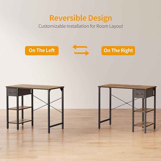 CubiCubi Computer Desk, 35 Inch Small Home Office Desk with Drawer Storage Shelves for Small Space, Writing Study Desk, Rustic Brown