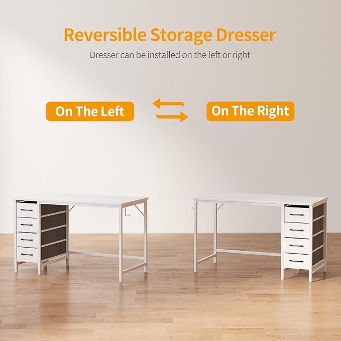 About This Desk with Drawers: 4 large capacity fabric drawers provide plenty of storage space to keep your office or...