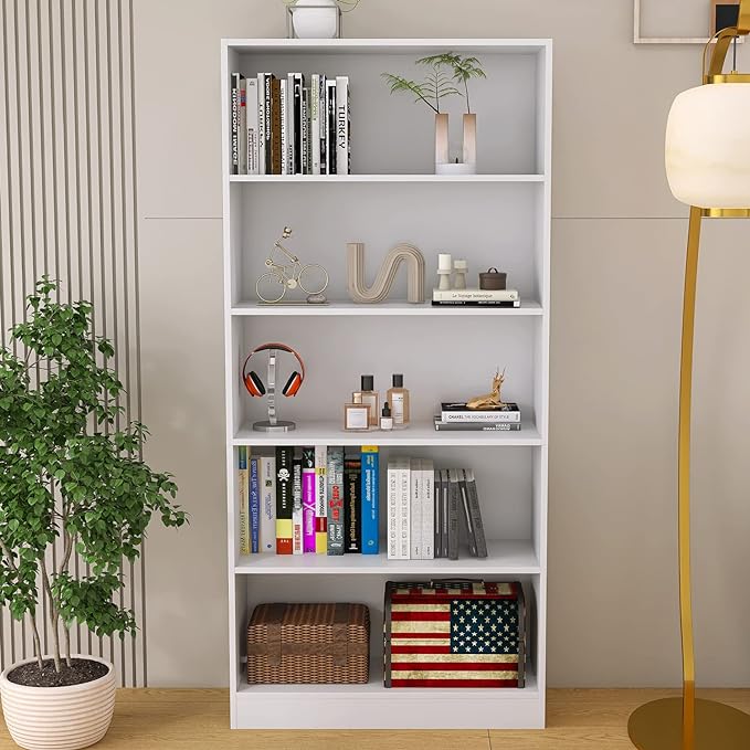 Bookshelves and Bookcases Floor Standing tall bookcase 5 Tier Display Storage Shelves Tall Bookcase Home Decor Furniture for Home Office(White 11.8" D x 31.5" W x 67.9" H)