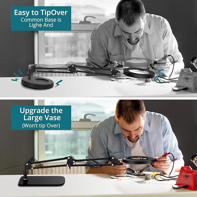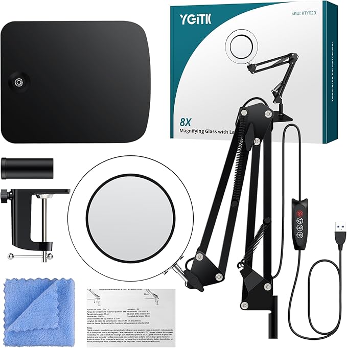 About This 【8X Magnifying Glass】8X magnification, 105mm diameter, 500mm arm length, with large base and clip. The lens is made...