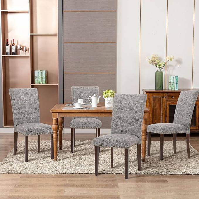 COLAMY Upholstered Parsons Dining Chairs Set of 4, Fabric Dining Room Kitchen Side Chair with Nailhead Trim and Wood Legs - Boho