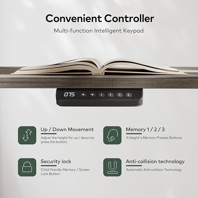 About This Powerful Motor: FEZIBO standing desk has reliable motor that could support height adjustment between 27.5''-46.9'' with low noise(under...