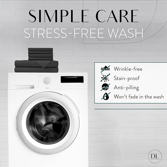 Danjor Linens King Size Sheets Set - 6 Piece Set Including 4 Pillowcases - Deep Pockets - Breathable, Soft Bed Sheets - Wrinkle Free - Machine Washable - Black King Bed Sheets - 6 pc