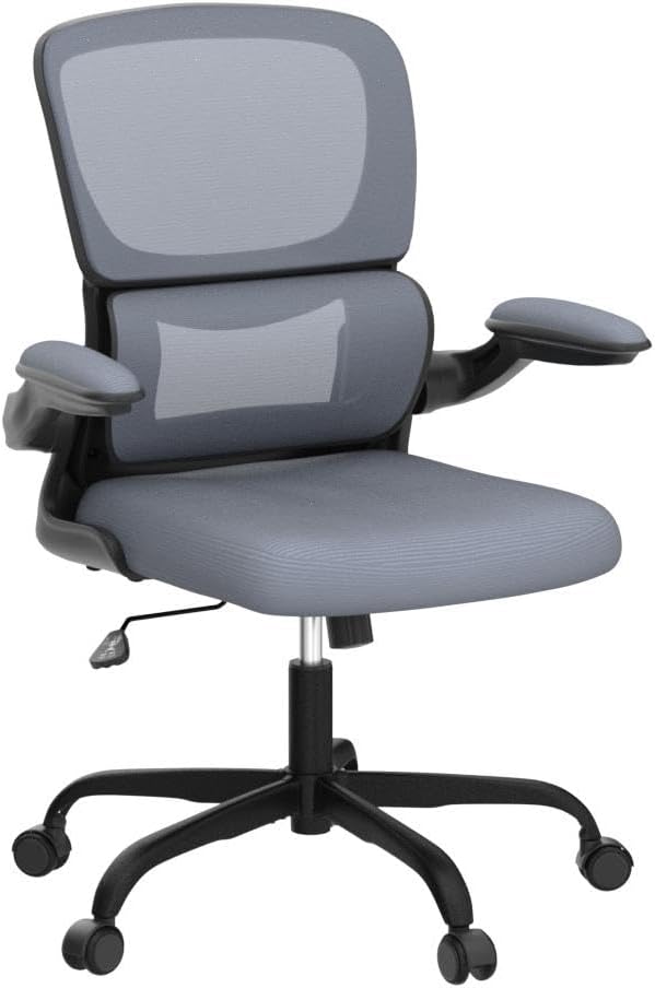 Office Chair, Ergonomic Desk Chair with Lumbar Support and Adjustable Armrests, Comfy Desk Chair Breathable Mesh Mid Back Computer Chair, Reclining Office Chair for Home Office - DarkGray