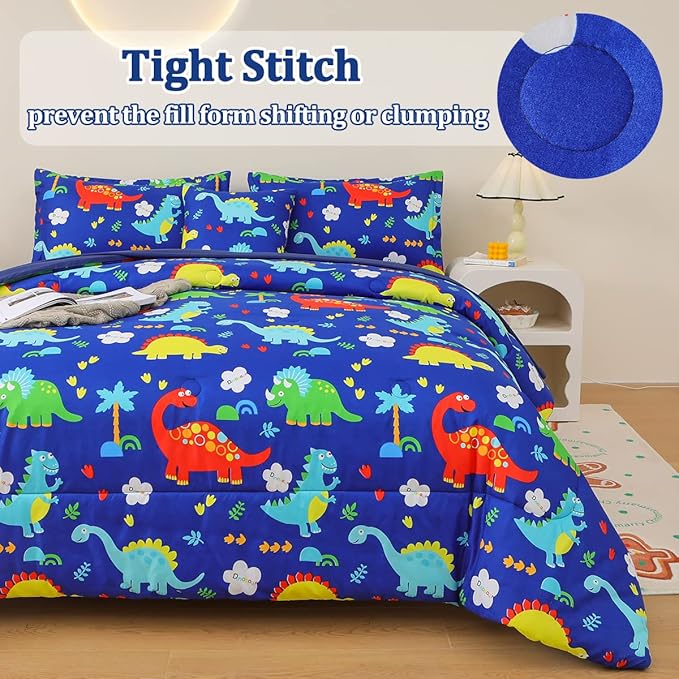 About This 100% Polyester 【Unique Design】The comforter is designed with cute dinosaur, tropical jungle plants together to create a fantastic...
