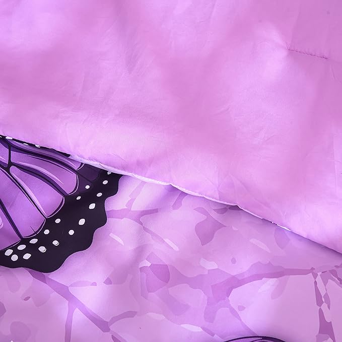 Btargot 3 Piece Purple Butterfly Girls Kids Adults Full Size Comforter Set, Lightweight Soft All Season Bedding Set with 2 Pillowcases