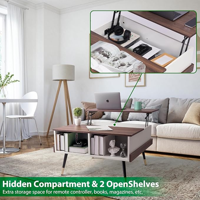 TOPSKY Lift Top Coffee Table, Square Coffee Table with Storage Shelves (Rustic Brown)