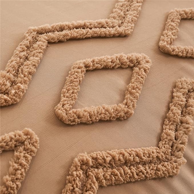 About This [Unique Tufted Design]: Khaki comforter set features geometric textured pattern and tufted pom pom dots. The simple yet...