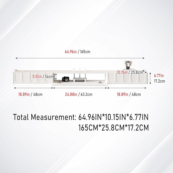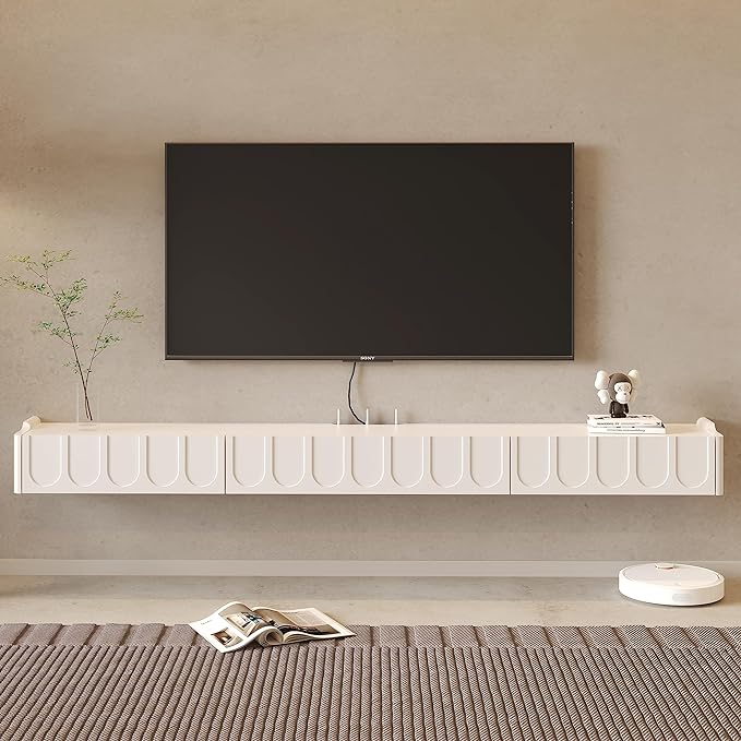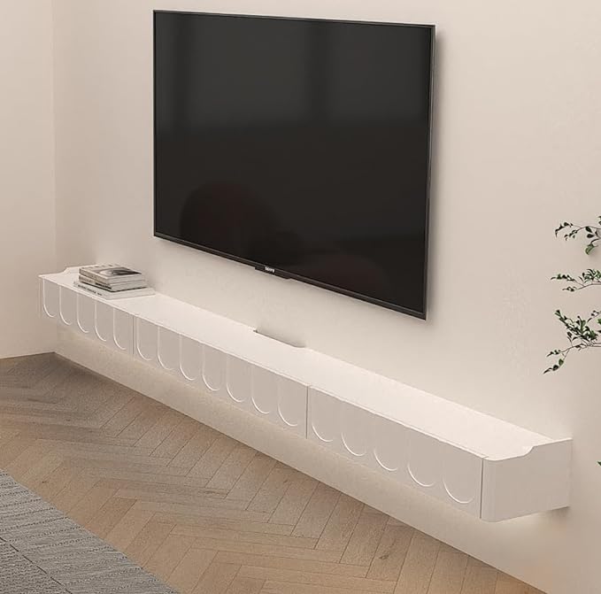 Floating TV Stand, 65'' High Gloss Wall Mounted TV Cabinet, Floating TV Shelves with Door & Drawers, Modern Entertainment Media Console Center Large Storage TV Bench for Living Room (White)
