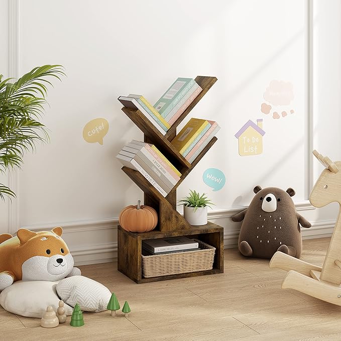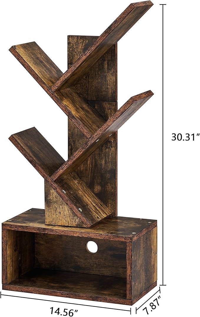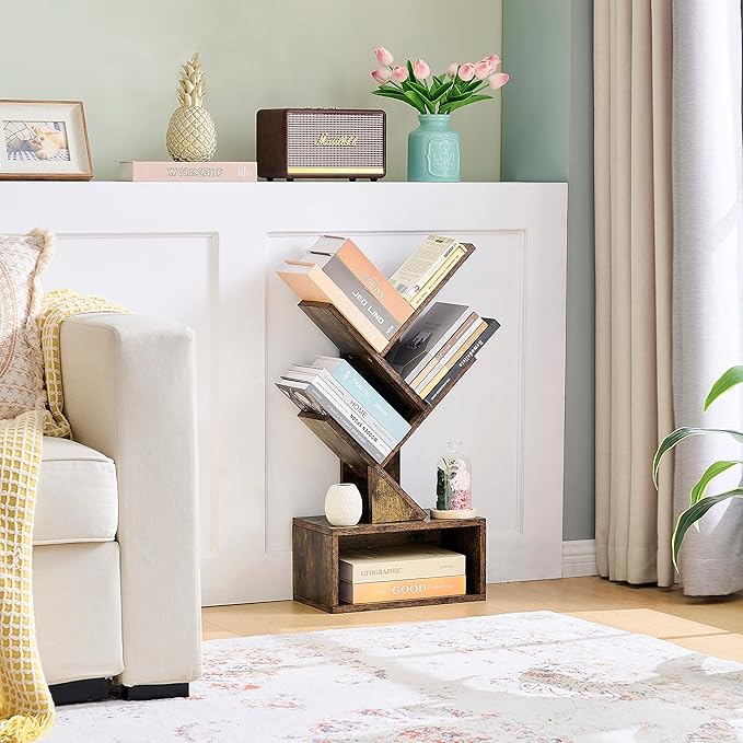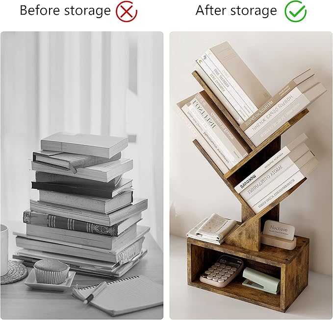 About This [Space Saving and Ample Storage Capacity] Our 3-tier tree bookshelf offers 3 open shelves and a large drawer...