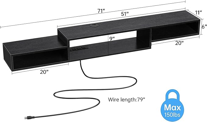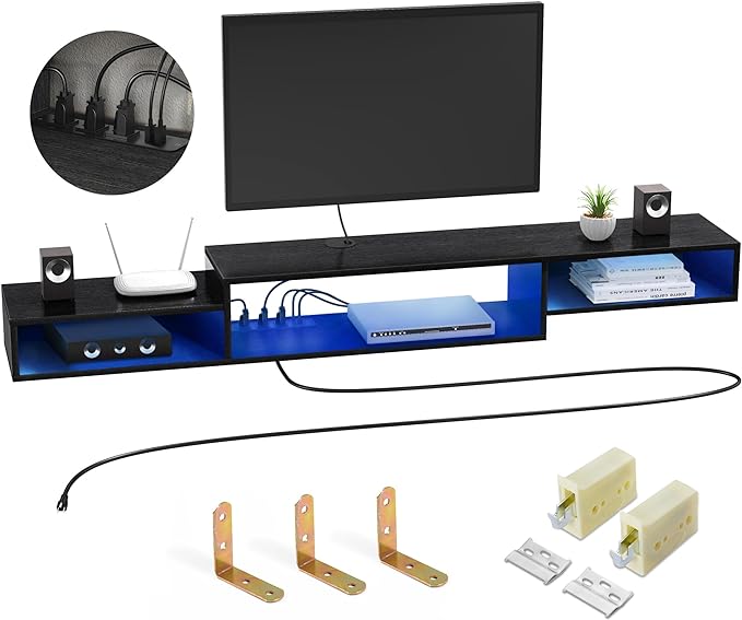 About This 【Floating TV Stand with Charging Station】 The built-in power strip with 3 outlets and 2 USB ports provide...