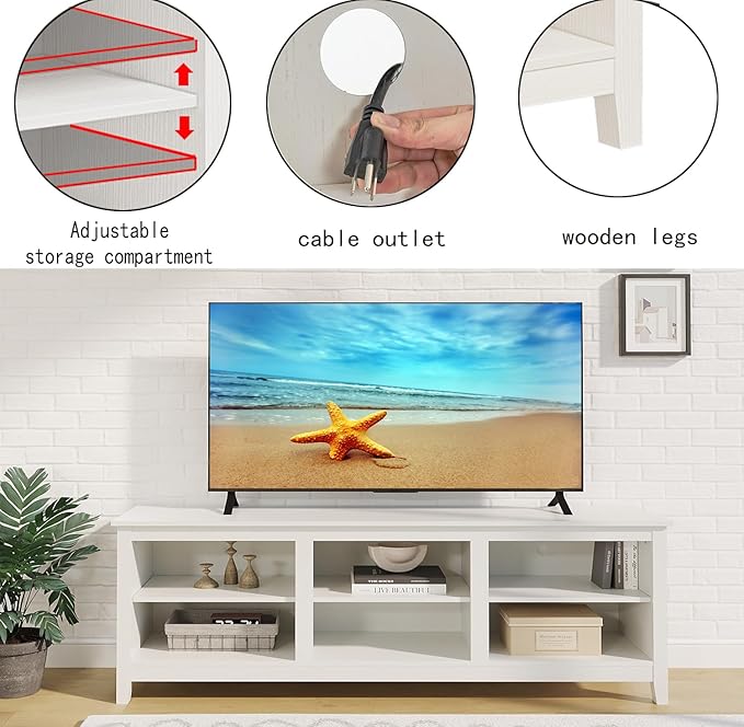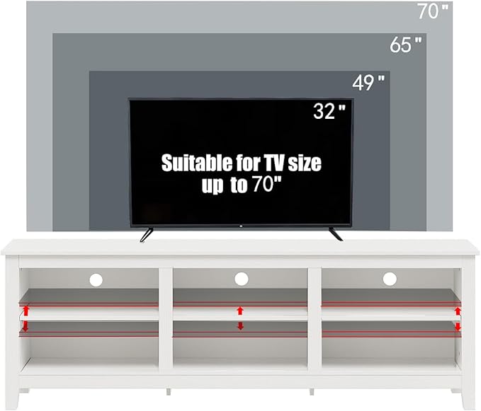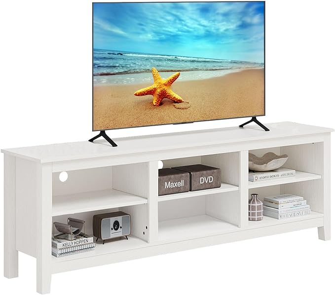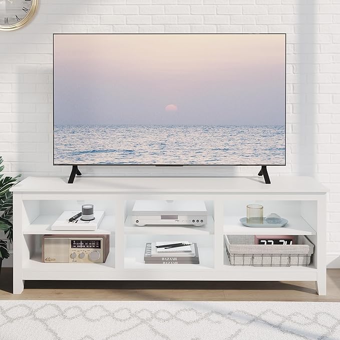TV Stand for 75 inch TV with Storage,Modern TV Entertainment Center for Bedroom,TV Media Console Table with 6 Open Storage Shelve,63 inch Wood TV Cabinet White