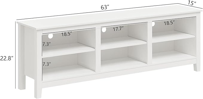 About This TV cabinet dimensions: 63" L x 15" W x 22.8" H. 6 open dividers [18.5" L x 12"...