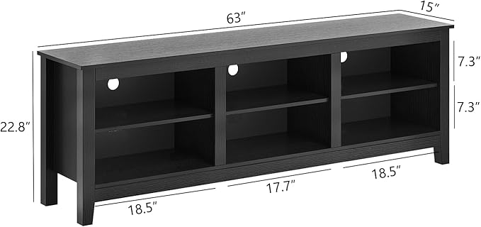 About This TV cabinet dimensions: 63" L x 15" W x 22.8" H. 6 open dividers [18.5" L x 12"...