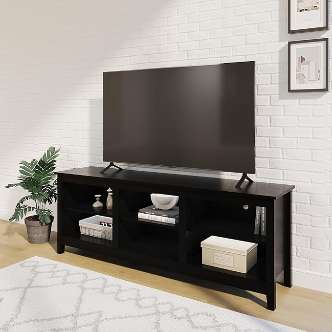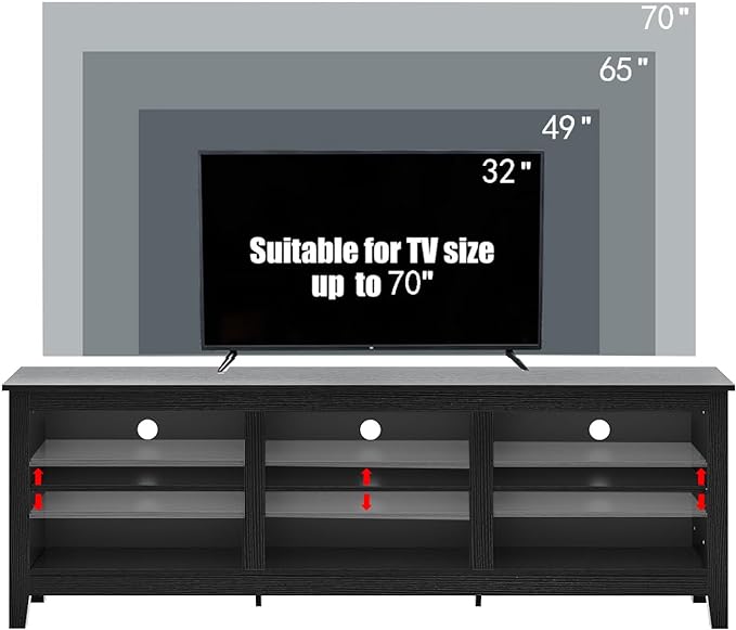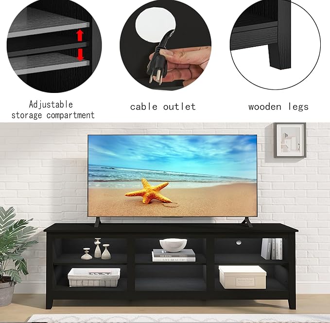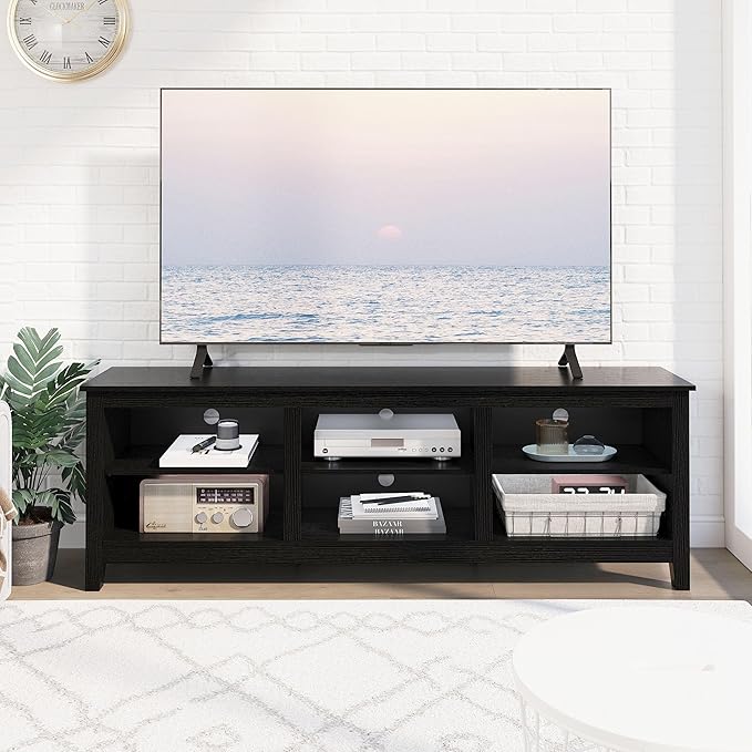 TV Stand for 75 inch TV with Storage,Modern TV Entertainment Center for Bedroom,TV Media Console Table with 6 Open Storage Shelve,63 inch Wood TV Cabinet Black