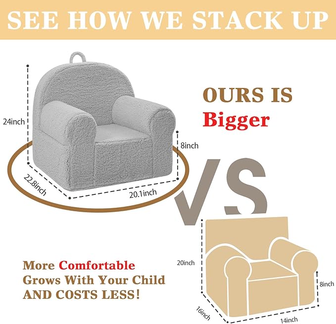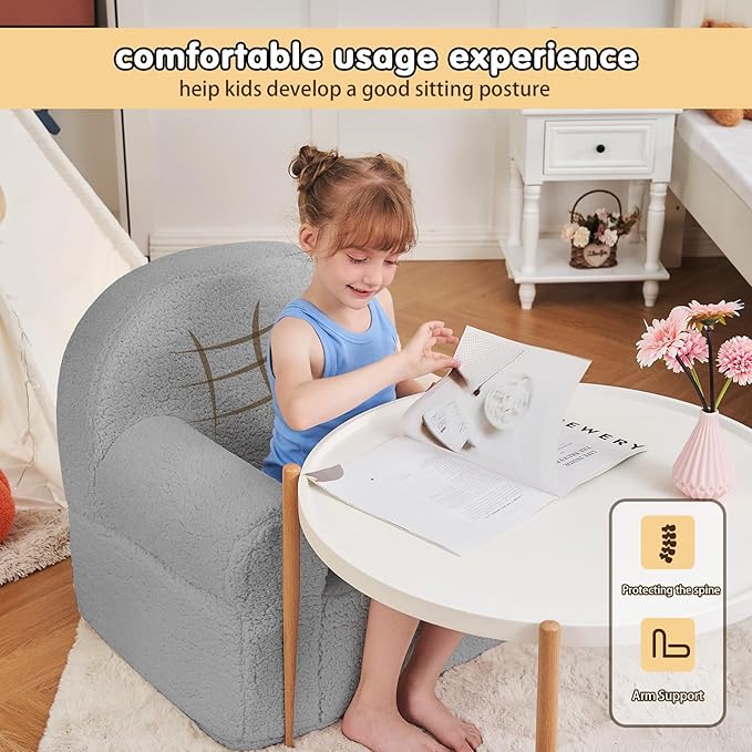 Toddler Chair Sherpa Couch Sherpa Kids Chair, Cuddly Kids Chairs Comfy Toddler Plush Chair Toddler Couch Reading Chair for Kids Fuzzy Baby Chair Grey