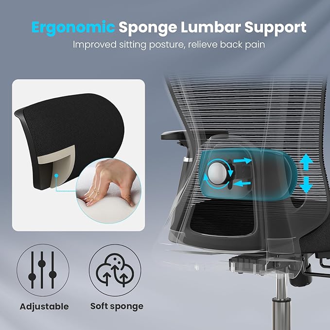 About This ✅Ergonomic Design: The ergonomic office chair has an "S" backrest ergonomic design back and adjustable lumbar support to...