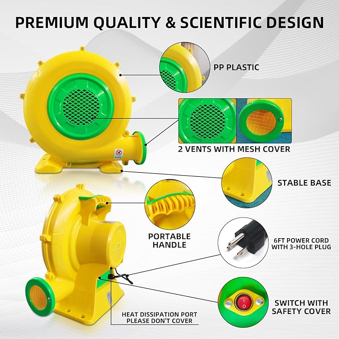Air Blower, 950W 1.25HP Bounce House Blower, Portable Pump Fan Blower Perfect for Inflatable Bounce House, Bouncy Castle, Jumper, Water Slide, Blower Corded(950 Watt 1.25HP)