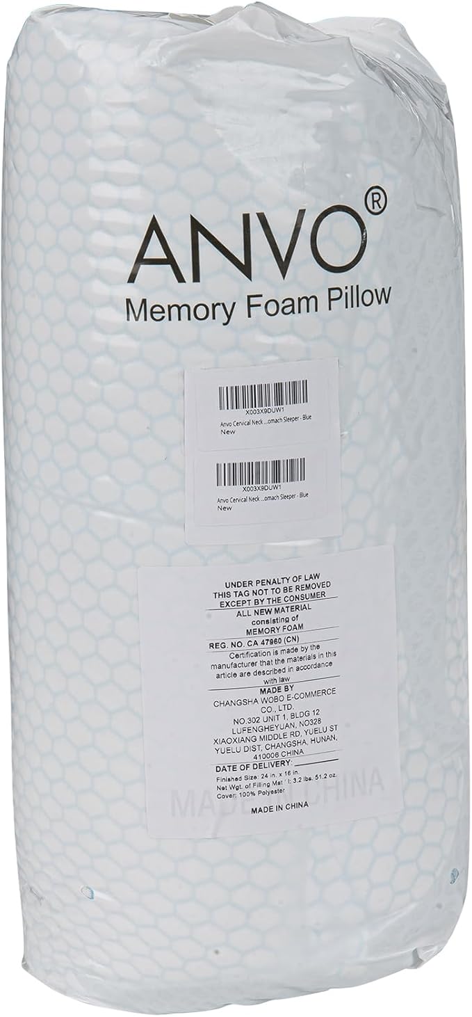 Anvo Cervical Neck Pillow for Neck and Shoulder Pain - Memory Foam Neck Pillows for Pain Relief Sleeping, Side Sleeper Pillow, Contour Orthopedic Firm Pillow for Back Stomach Sleeper - Blue
