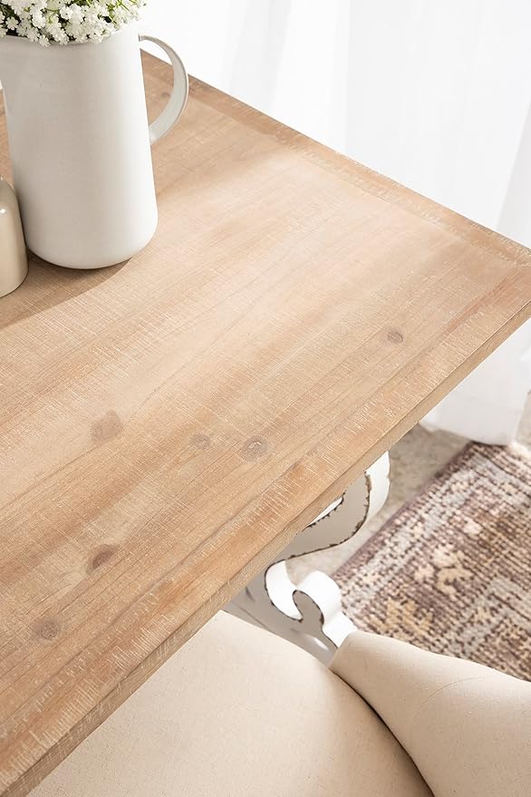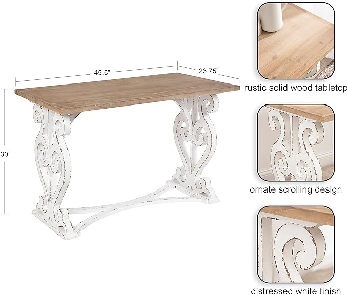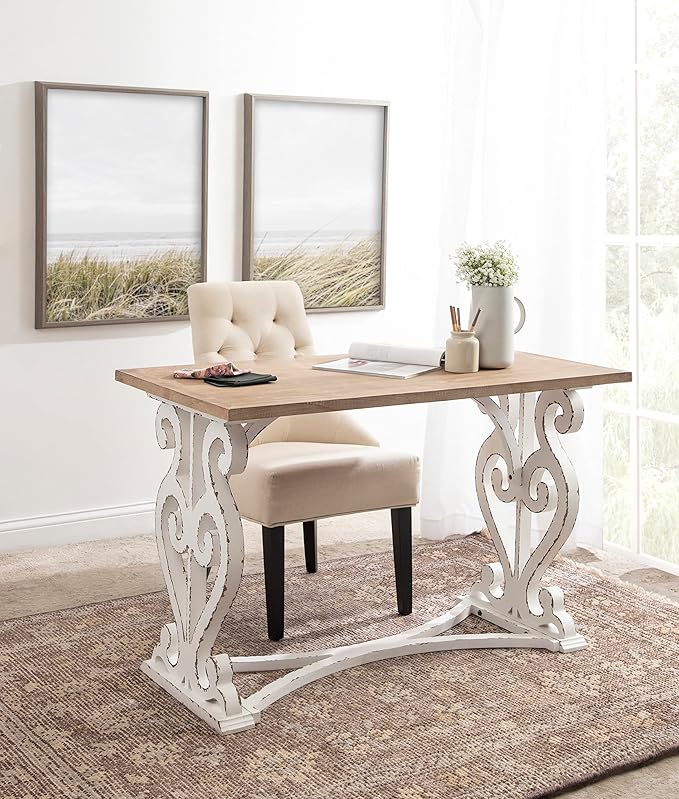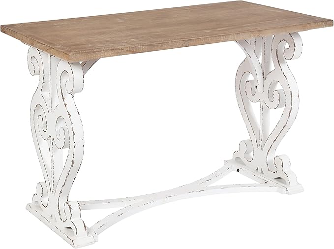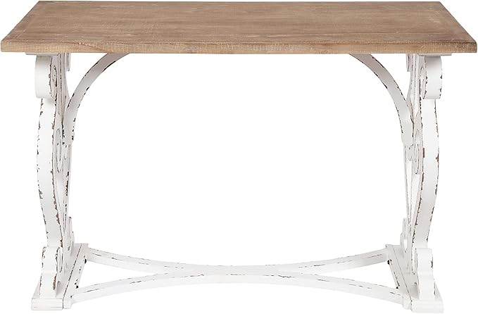 Kate and Laurel Wyldwood Farmhouse Wooden Desk, 46 x 24 x 30, Brown and White, Rustic Carved Wood Computer Desk for Functional and Stylish Home Office Decor