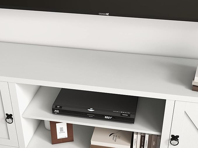 About This 📺 Modern Farmhouse TV Stand - The TV stand with unique door design has a simplistic retro charm...