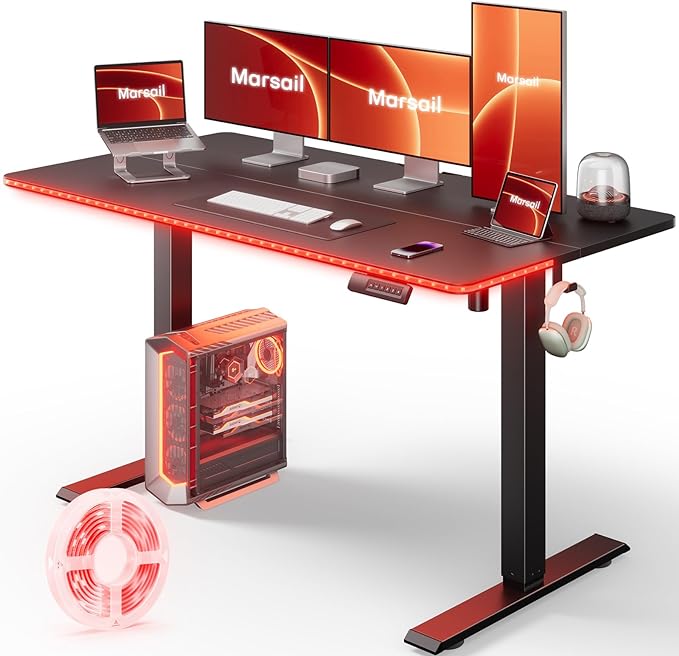 Marsail TZESD11BJZ Electric Standing Desk, 5524 Inch, Black-with light