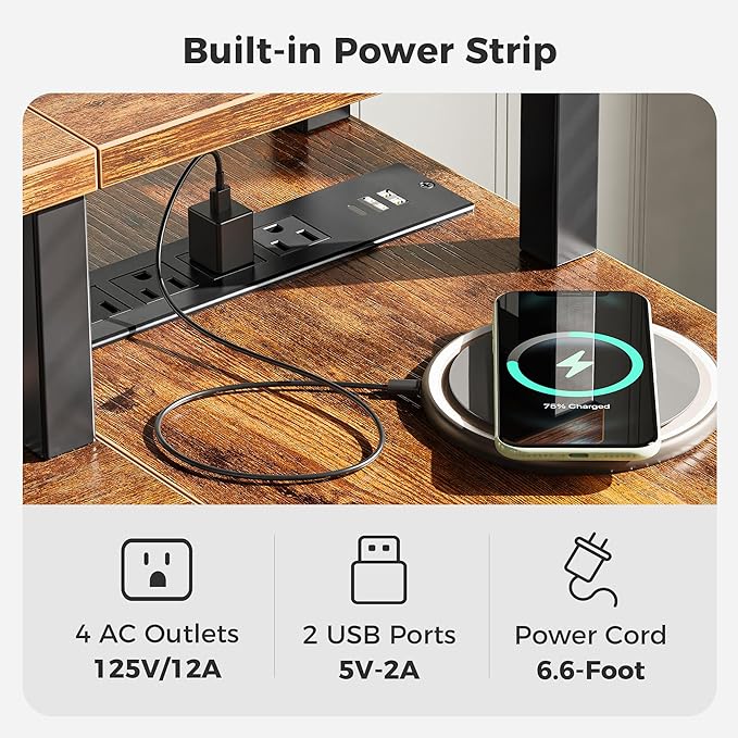 SUPERJARE 53 inch Reversible L Shaped Desk with LED Lights & Power Outlets, Computer Desk with Shelves & Monitor Stand, Gaming Desk with Drawer, Home Office Desk Corner Desk, Rustic Brown